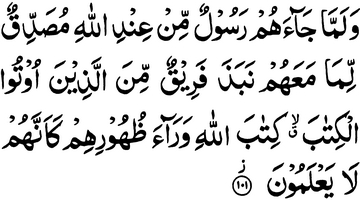 a party of those who were given the scripture cast aside the Scripture of Allah behind their backs, as if they did not know.