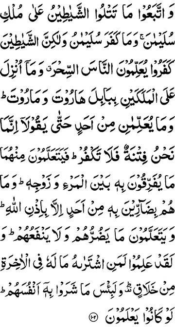 Evil-ones disbelieved;— they taught men enchantment. And nothing had been revealed on the two malaks at Babel,— Harut and Marut. Nor these two teach anyone