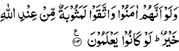 And if they had believed and been reverent, surely a reward from the presence of Allah would have been better; had they been knowing!