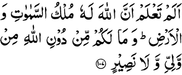 Do you not know that surely Allah,— to Him belongs the sovereignty of the heavens and the earth? And besides Allah you have neither any ally nor any helper.