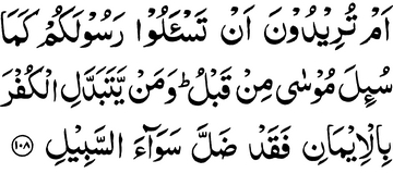 Do you desire to question your Rasul as was questioned Musa in the past? But whoever exchanges Unbelief for Faith, then he indeed has lost the Even Path.