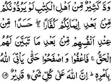 after the Truth has become clear to them. But forgive, and excuse till Allah comes with His decree. Allah is truly Possessor of power over all things.