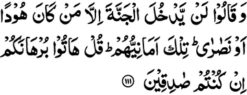 And they say: “None will enter the Garden except him who is a Jew, or a Christian.” These are their vain desires.