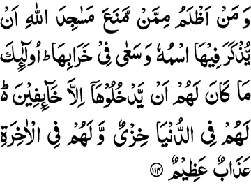 And who is more unjust than him who prevents the Masjids of Allah from being remembered His Name in them, and strives in their desolation?