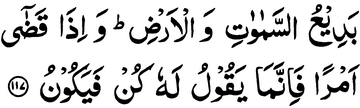 Originator of the heavens and the earth! And when He decrees an affair, He then just says to it: "BE", and it becomes.
