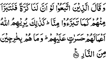 severed from us.” Likewise Allah shows them their deeds as intense regret to them. And they will not be an escapee from the Fire.