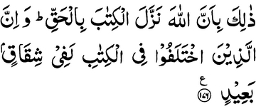 That! because Allah has revealed the Scripture with the Truth. And surely those who disagree in the Scripture are indeed in a far-off obstinacy.