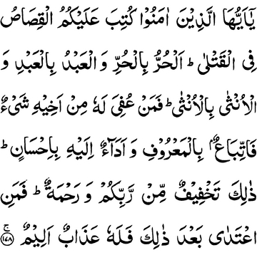 O you who believe! retaliation is prescribed for you in case of murder: the free for the free, and the slave for the slave,