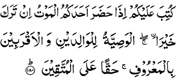 It is prescribed for you when death approaches any of you, if he leaves behind wealth the bequest to the parents and near relatives with fairness— a duty on the reverent.